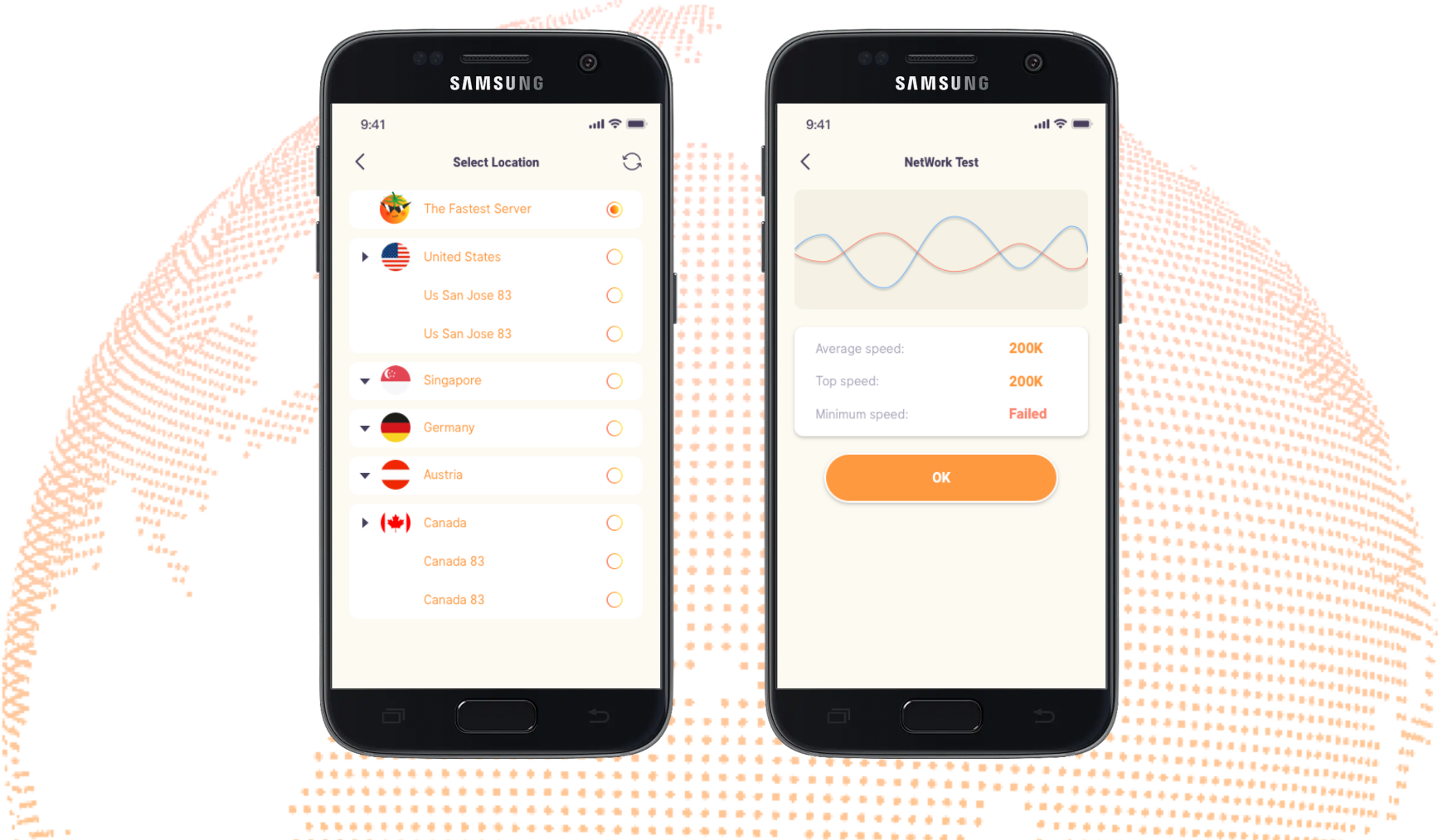 Nodes from all over the world. Quick connection.